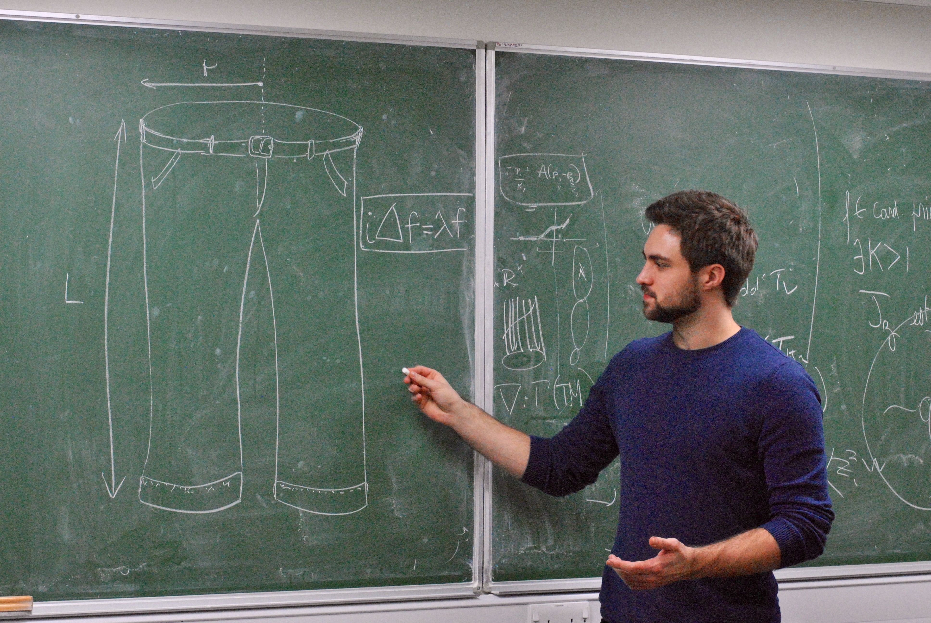 One of the authors, Ian Jubb, discussing a pair of trousers with his colleagues at Imperial College London. Ian Jubb is currently the PhD student of Fay Dowker in the Theoretical Physics group at Imperial College London.