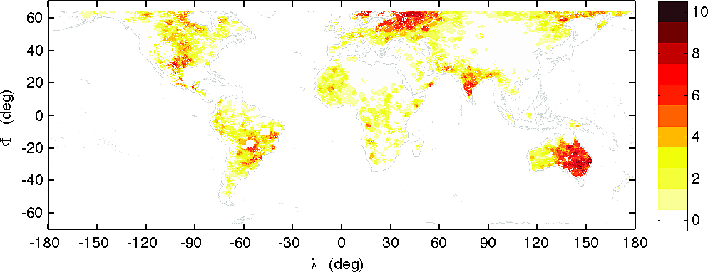There are numerous issues that might prevent us from placing a detector at a specific site. It is completely impractical to build a gravitational wave detector underwater, for example, which essentially excludes any oceans, seas and fresh water locations. We can expand our list of ‘exclusion regions’ to include many other factors, such as coastlines, seismically active zones, major roads and populated areas, all of which would generate excessive environmental disturbances; polar regions, elevated areas and slopes that would demand prohibitive extra effort to construct and to maintain; protected areas or military zones which would also be inaccessible. In this way, by using some public databases, we have developed a new perspective on the world map, presenting the ‘allowable’ regions (shown in black on the map above) for building gravitational wave detectors.